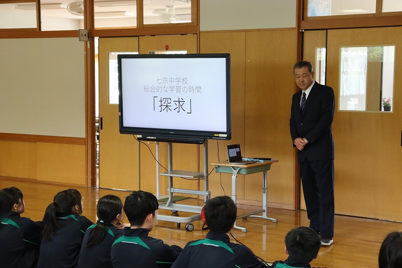 「探求」オリエンテーション 2026/04/14 最終更新日時 : 2026/04/24 jsceditor 七宗中学校の総合的な学習の時間は「探求」の時間と呼んでいます。 今年も個人でテーマをもち取り組みます。 「探求」はすべての職員で支援します。今年も一人一人が志をもち、主体的に取り組む姿を期待しています。