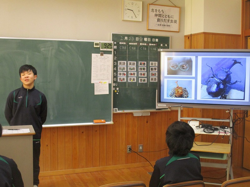 期日変更にも関わらず参観いただいた保護者の皆様、ありがとうございました。自分でテーマを決めて取り組んだ「探求」の時間は。一人で取り組んだ生徒、同志が集まりグループで取り組んだ生徒とさまざまでしたが、「テーマ設定」→「情報収集」→「整理・分析」→「まとめ」のサイクルで取り組むことができました。