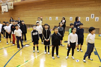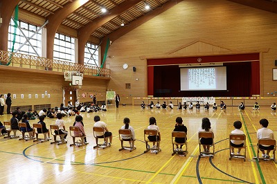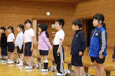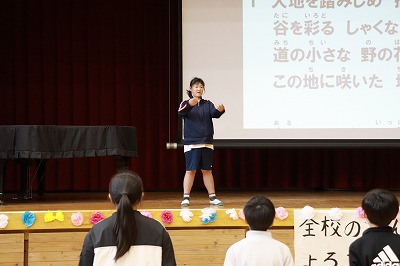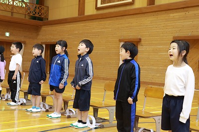 全校合唱の校歌では、大きな声が元気よく出ていました!