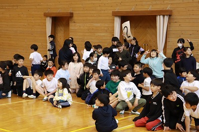 〇2年生から準備をしてきたプレゼントをもらい、1年生もうれしそうでした!